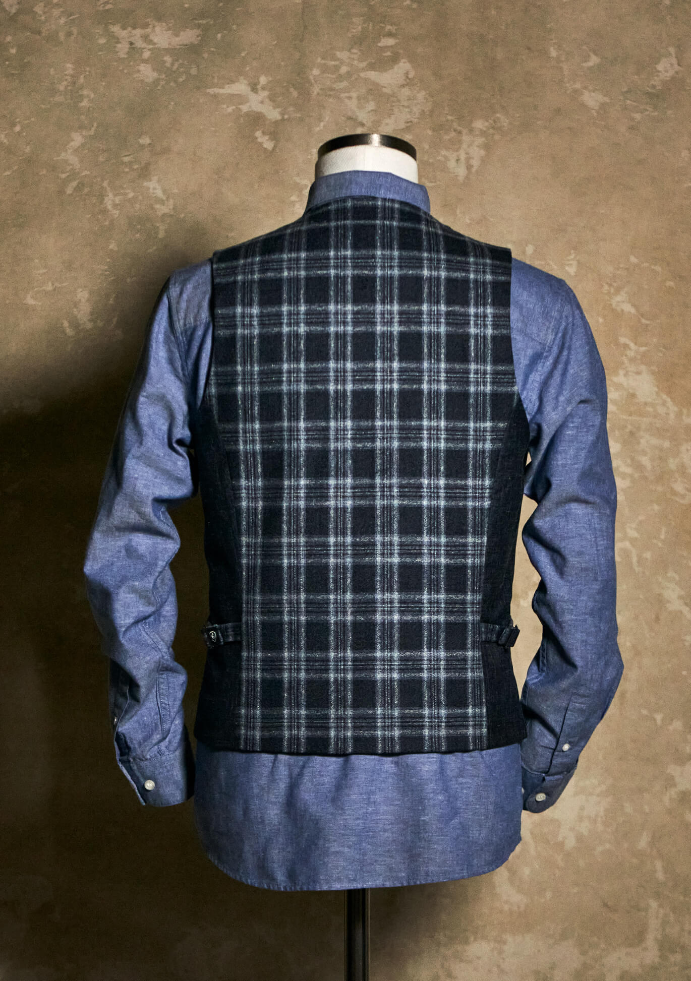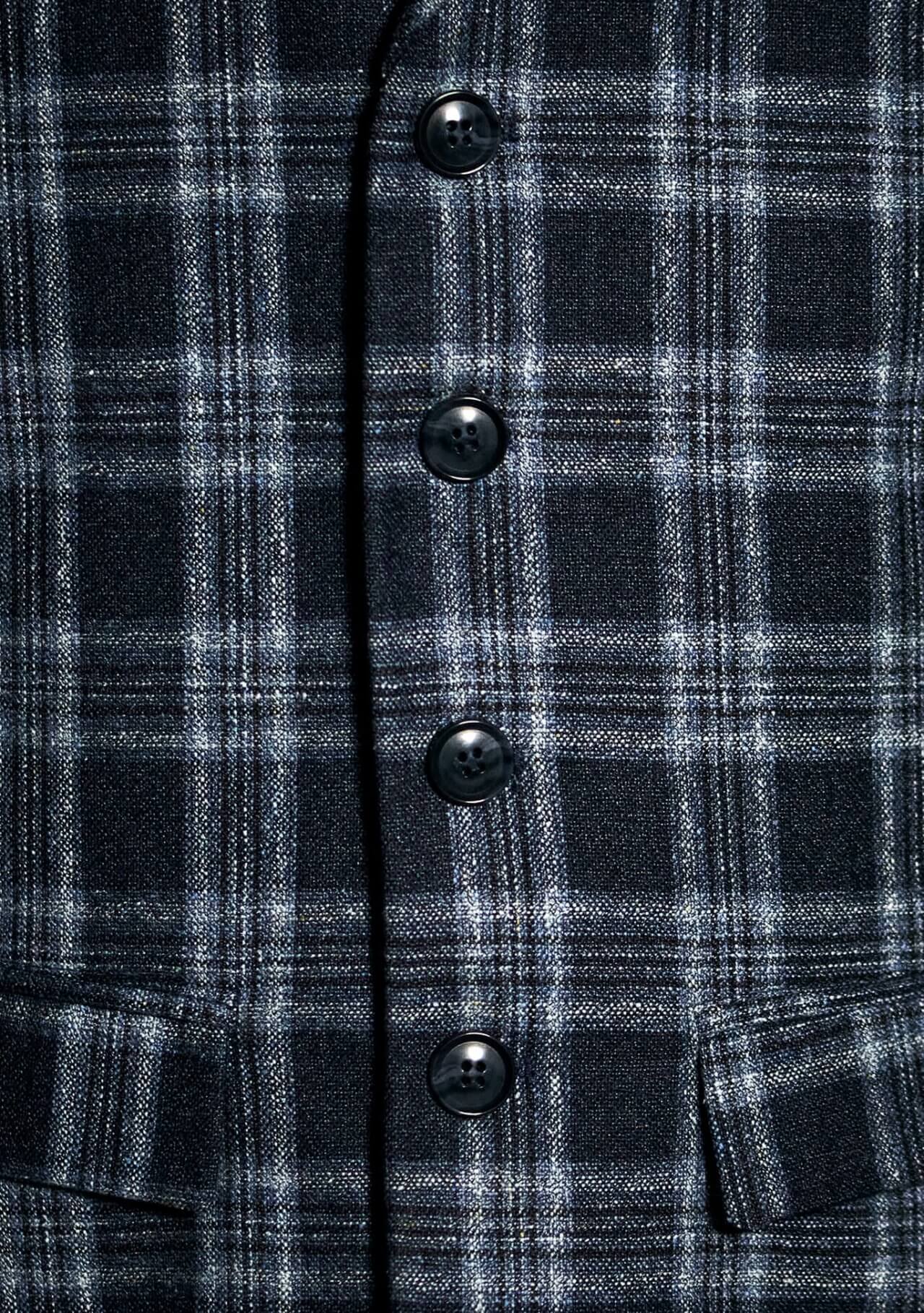 The clean blue plaid pattern gives this men’s vest with lapels a more tailored note without making it feel too formal. It works especially well with white, light blue, or mid-blue tops — from cotton or linen shirts to high-quality polos, lightweight long-sleeves, or refined T-shirts. Well-kept jeans, chinos, or understated trousers in shades of blue, gray, or anthracite all pair beautifully with it. For a more relaxed take, the vest works especially well with an open shirt, a polo, or a simple T-shirt combined with clean sneakers. For a more polished look, style it with a finer shirt, loafers, or summer leather shoes. This gives the vest a styling range that moves from confident casual to more dressed and refined.