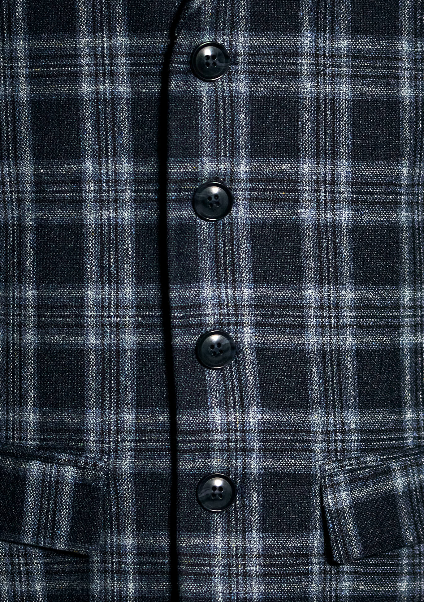 Buttons: KS horn buttons in dark blue with a silky matte sheen